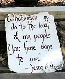 “Then the king will say to those at his right hand, “Come, you that are blessed by my Father, inherit the kingdom prepared for you from the foundation of the world; for I was hungry and you gave me food, I was thirsty and you gave me something to drink, I was a stranger and you welcomed me, I was naked and you gave me clothing, I was sick and you took care of me, I was in prison and you visited me.” Then the righteous will answer him, “Lord, when was it that we saw you hungry and gave you food, or thirsty and gave you something to drink? And when was it that we saw you a stranger and welcomed you, or naked and gave you clothing? And when was it that we saw you sick or in prison and visited you?” And the king will answer them, “Truly I tell you, just as you did it to one of the least of these who are members of my family,* you did it to me.” Matthew 25:35 – 40