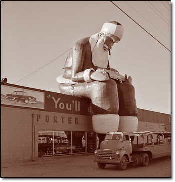 I sure wish I could read what “I’ll do….” Behind Santa’s legs, but apparently everyone who lives in the community doesn’t care – “Godzilla Santa Has Come to Town”. It seems to me that parents in town might be a little concerned that their children aren’t sleeping at night because they are afraid “Godzilla Santa” may get up and not only crush the car in their driveway, he may also crush the fire truck, the milk truck, and whatever truck that is sitting at Santa’s feet. Now, I am no doctor, but doesn’t it look like Santa better get to the hospital soon to take care of the cellulitis in his legs? I guess that is what happens when you ride in a sleigh too long.