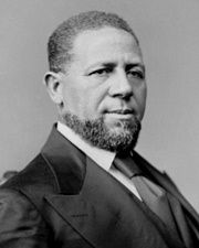 “Hiram R. Revels was a minister in the African Methodist Episcopal Church (AME),a Republican politician, and college administrator. Born free in North Carolina, he later lived and worked in Ohio, where he voted before the Civil War. He became the first African American to serve in the Congress when he was elected to the United States Senate to represent Mississippi in 1870 and 1871 during Reconstruction. During the civil war Revels had helped organize two regiments of the United States Colored Troops and served as a chaplain. After serving in the Senate, Revels was appointed as the first president of Alcorn Agricultural and Mechanical College (now Alcorn State University), 1871-1873 and 1876 to 1882. Later he served again as a minister.” (wikipedia)