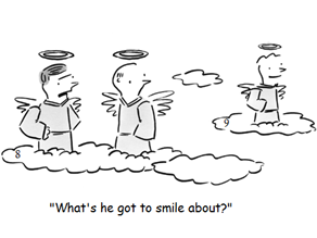 “Even as you read this, Jesus is preparing a place for you in heaven. That beats even a beach house on the French Riviera any day of the week. Your neighbors in that heavenly-place-to-come might not be ones you would choose. In fact, you might be surprised by who’s there. All the more reason to learn to get along with the neighbors you have right now.” (Laurie Hanson. The Funny Shape of Faith: Devotions for the Rest of Us (Kindle Edition.)