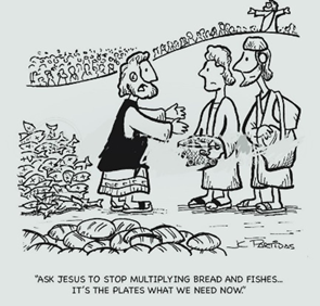 The story of the feeding of the 5000, like the miracle of the water turned to wine, are stories about abundance. From nothing more than five loaves and two fish, Jesus feeds 5000, plus women and children. Where does the abundance come from? They come from Jesus, of course. And they come through the hands of the disciples who are willing to partake in the miracle. The skeptics will say “Oh it is just hyperbole, a myth, story, a fabrication.” Oh, really? If this was just a story, a fabrication, a myth, then why are we still telling it 2000 years later? And not just repeating a story written 2000 years ago, but a story that was first told and shared by mouth from generation to generation, person to person, household to household before it was finally written down and put into any kind of book. If this story was a fabrication, it wouldn’t have had enough gas to last for two millennia.